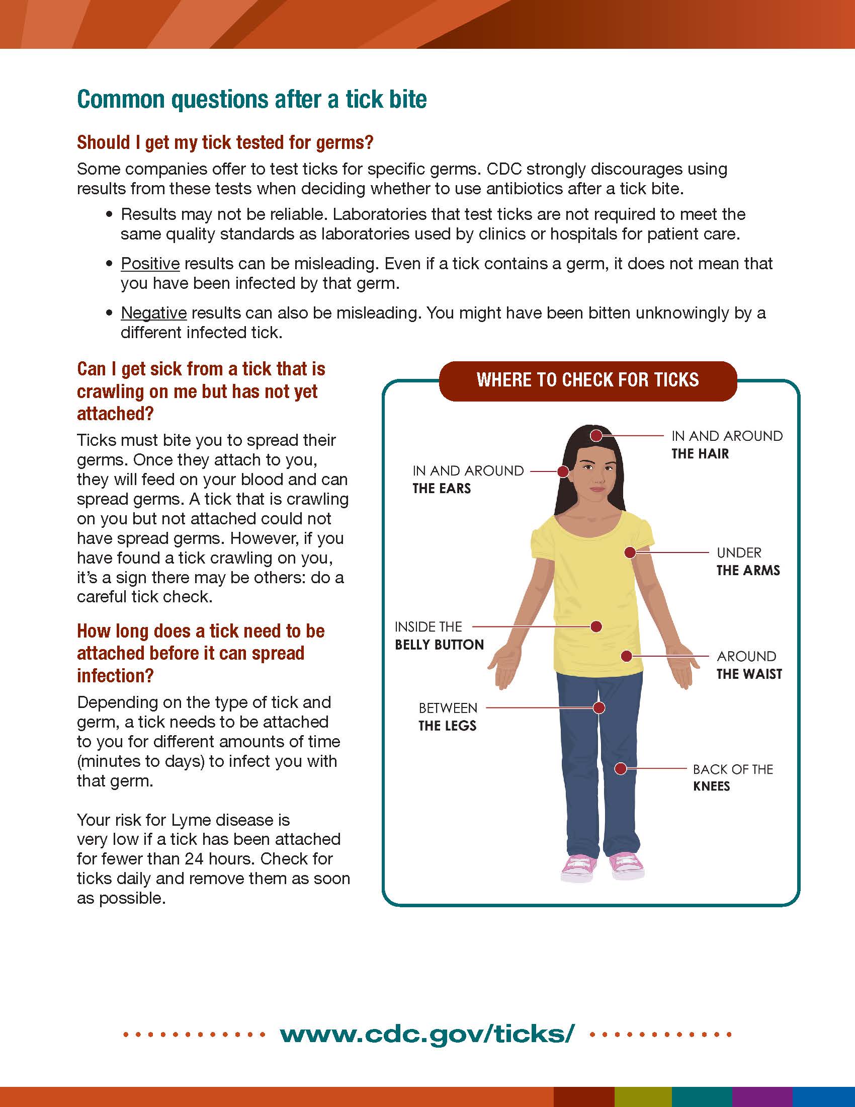 Tick-borne diseases are those spread by the bite of an infected tick. These diseases can be caused by bacteria, parasites, or viruses, although the diseases caused by bacteria are most common. Several tick species found in Connecticut can spread types of bacteria that can cause illness in humans, and infection with more than one is possible through one tick bite. Symptoms and treatment for each disease depends on the type of bacteria, parasite, or virus causing the illness. There are no vaccines to prevent these diseases. In Connecticut, surveillance is conducted to identify tick-borne diseases spread by ticks in the state and those that might be travel-related (diseases acquired out of the state). The Connecticut Department of Public Health conducts surveillance for the following tick-borne diseases: