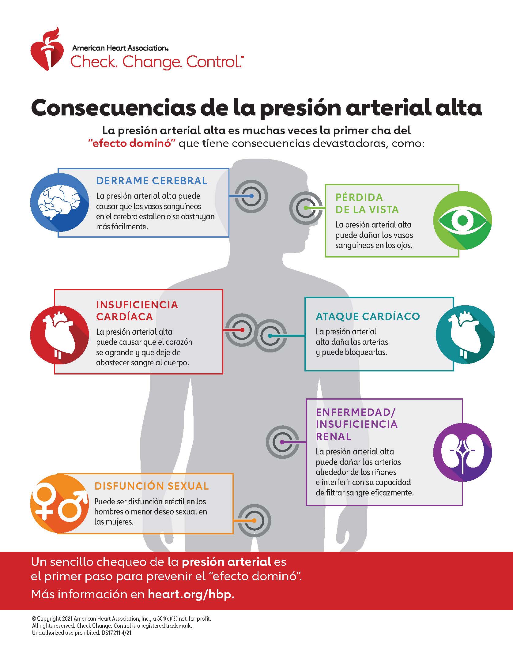 - Heart failure — The increased workload from high blood pressure can cause the heart to enlarge and fail to supply blood to the body.