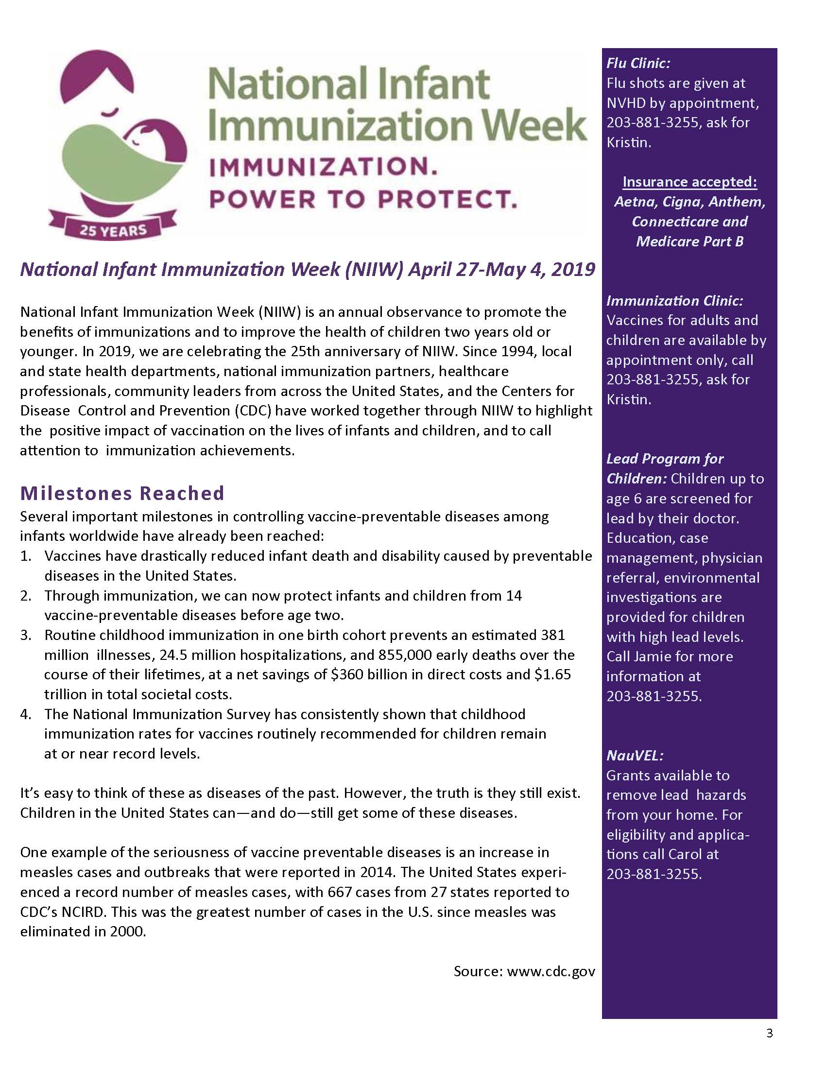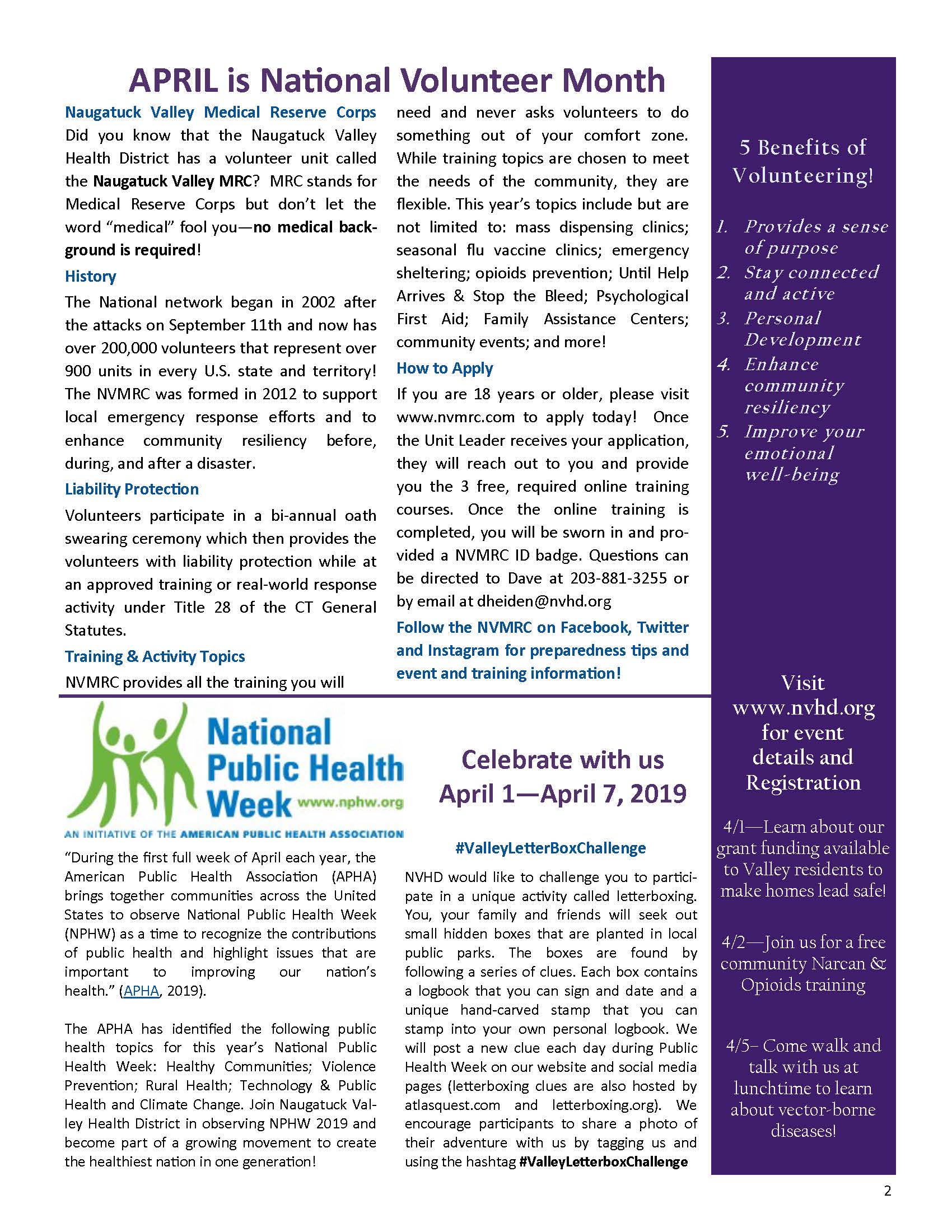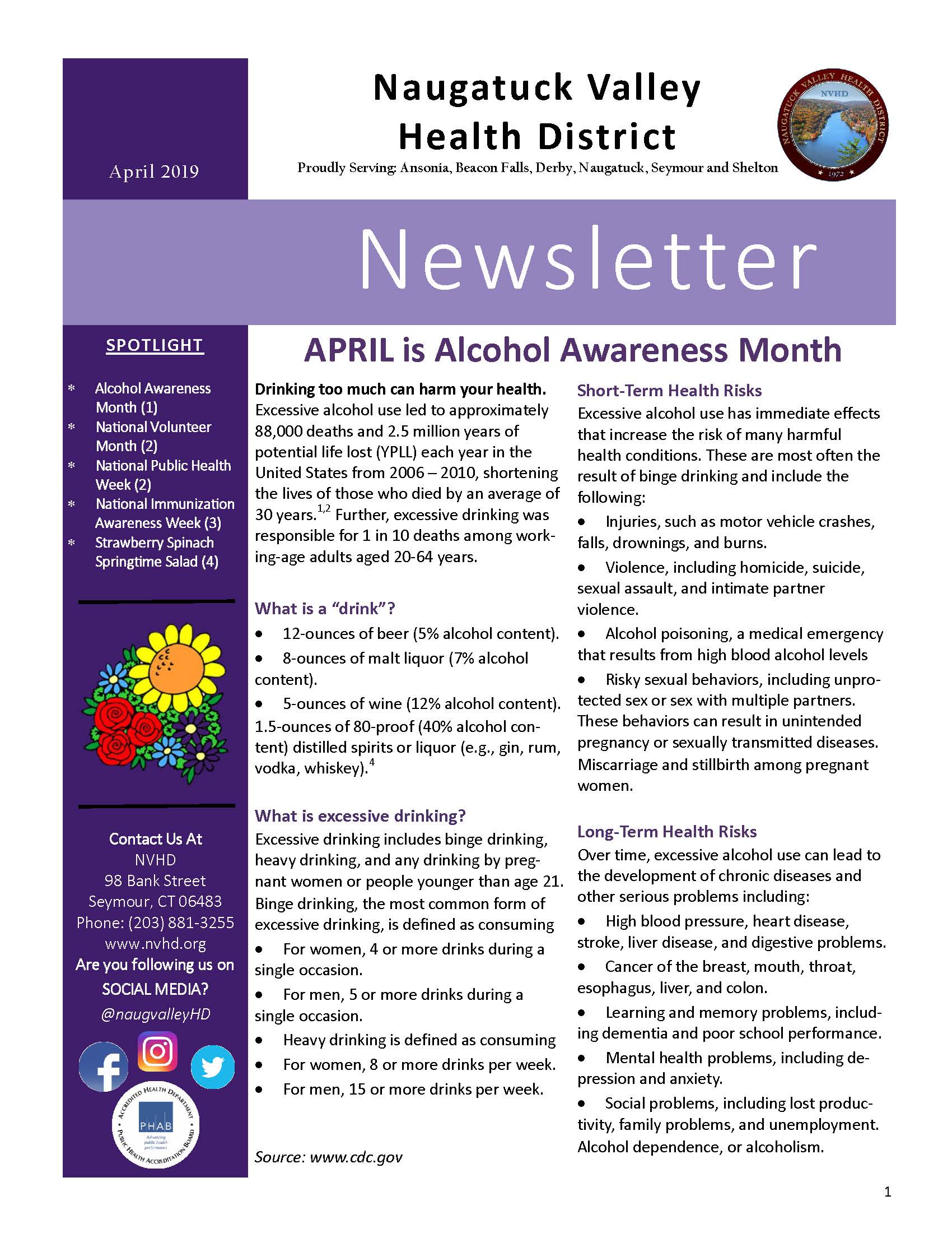 Issue Topics: Alcohol Awareness Month; National Volunteer Month; Infant Immunization Week; National Public Health Week; Healthy Spring Recipe….
