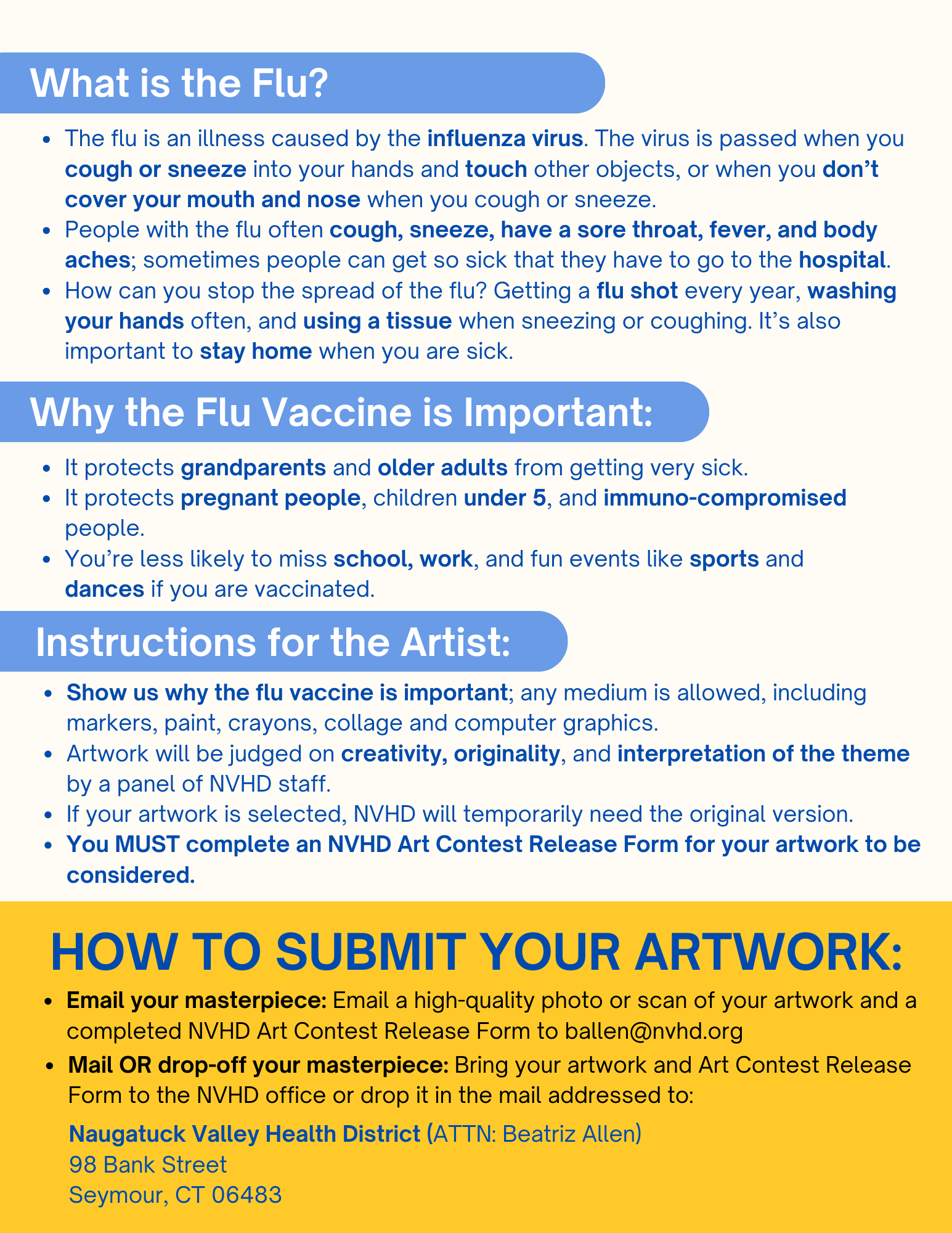 We are seeking original drawings depicting the importance of getting the yearly flu vaccine. Submissions will be divided into four categories based on age (five to seven, eight to ten, eleven to thirteen, and fourteen to eighteen), and one winner will be chosen from each category. The winning four will be featured on a printed postcard, which will be mailed to Valley residents to highlight the importance of flu vaccination and encourage recipients to get their flu shot in the 2024-2025 flu season.