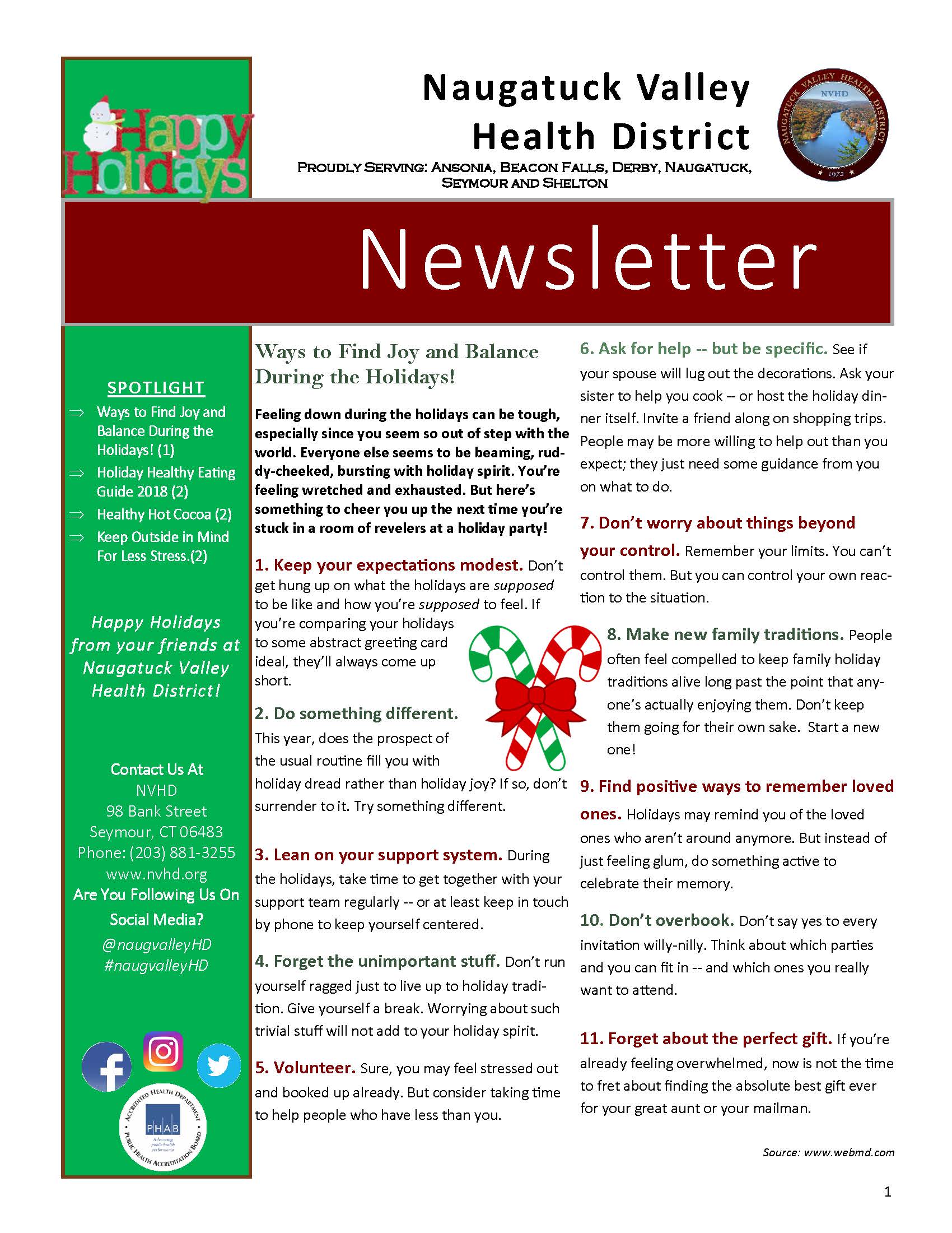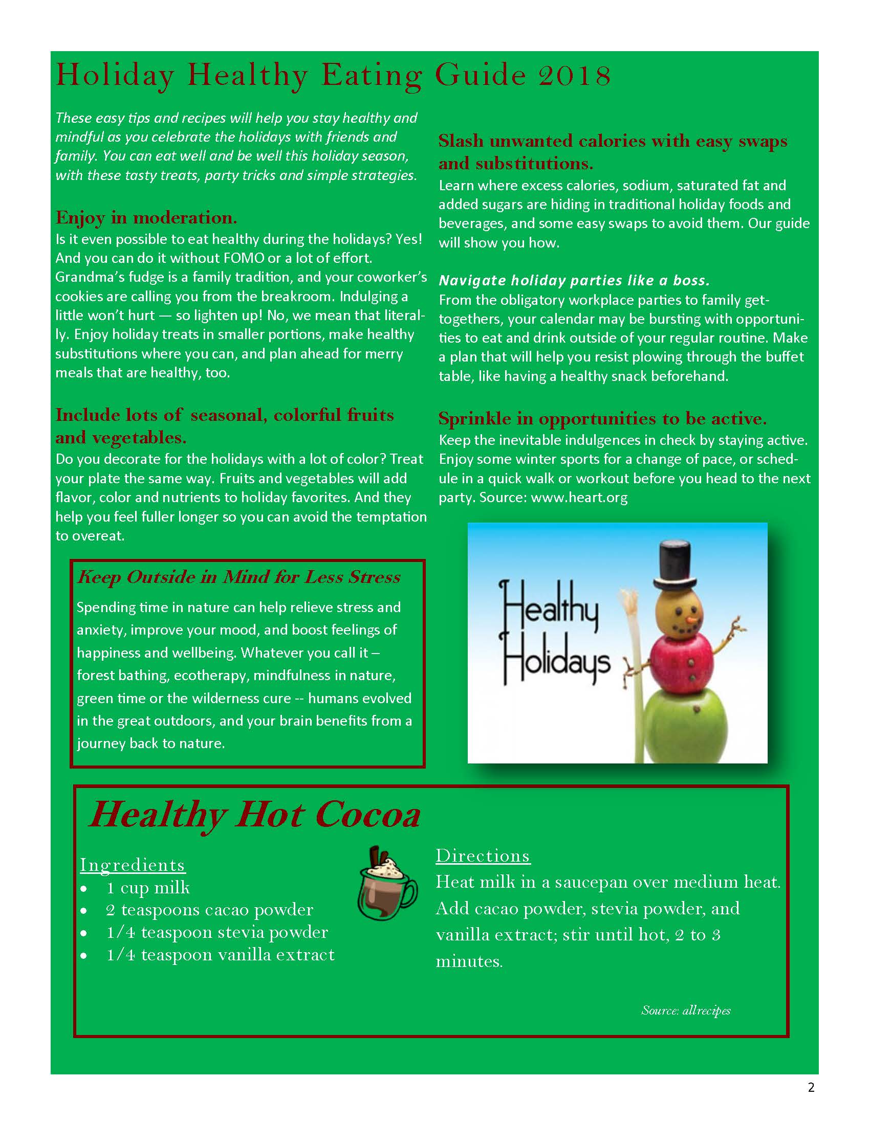 Issue Topics: Ways to Find Joy and Balance During the Holidays; Holiday Healthy Eating Guide; Healthy Hot Coca Recipe; Keep Outside in Mind for Less Stress