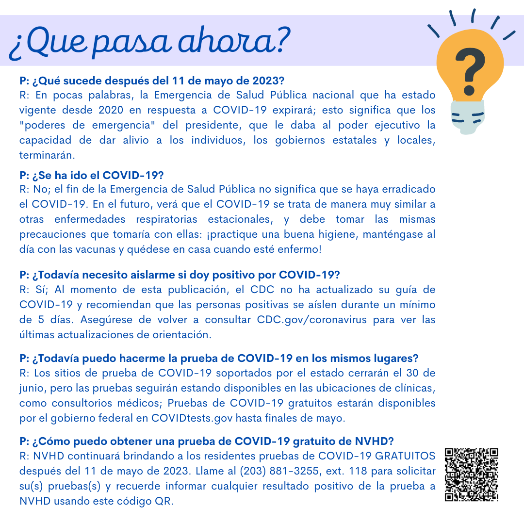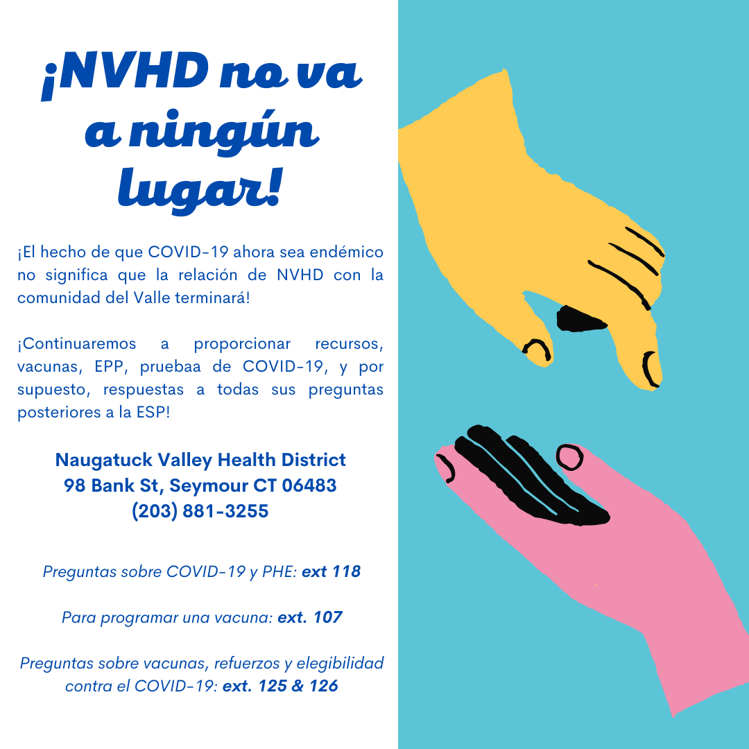 Desplácese para obtener más información importante del Distrito de Salud del Valle de Naugatuck sobre el final de la declaración de emergencia pública de COVID-19 y lo que eso significa para usted