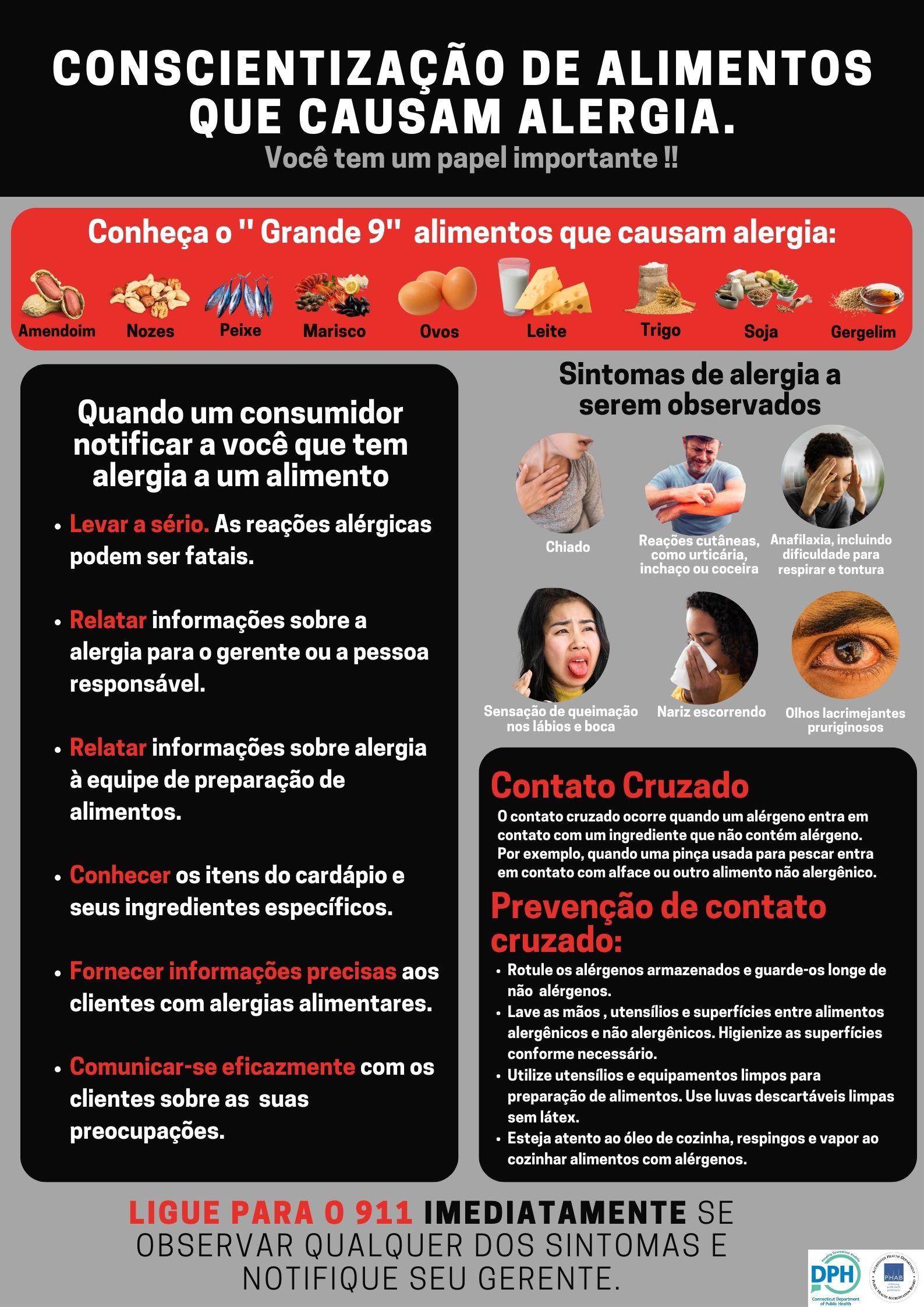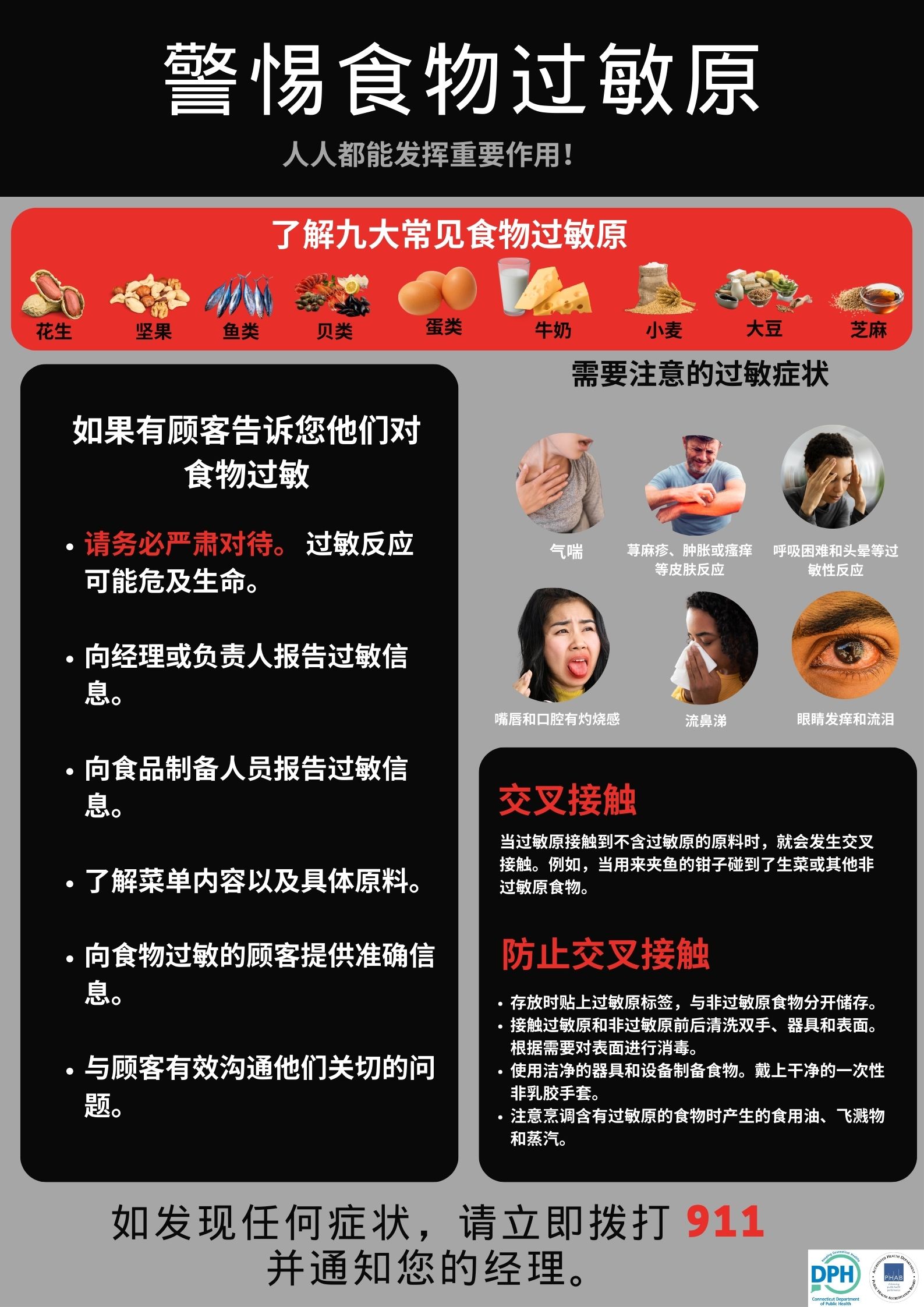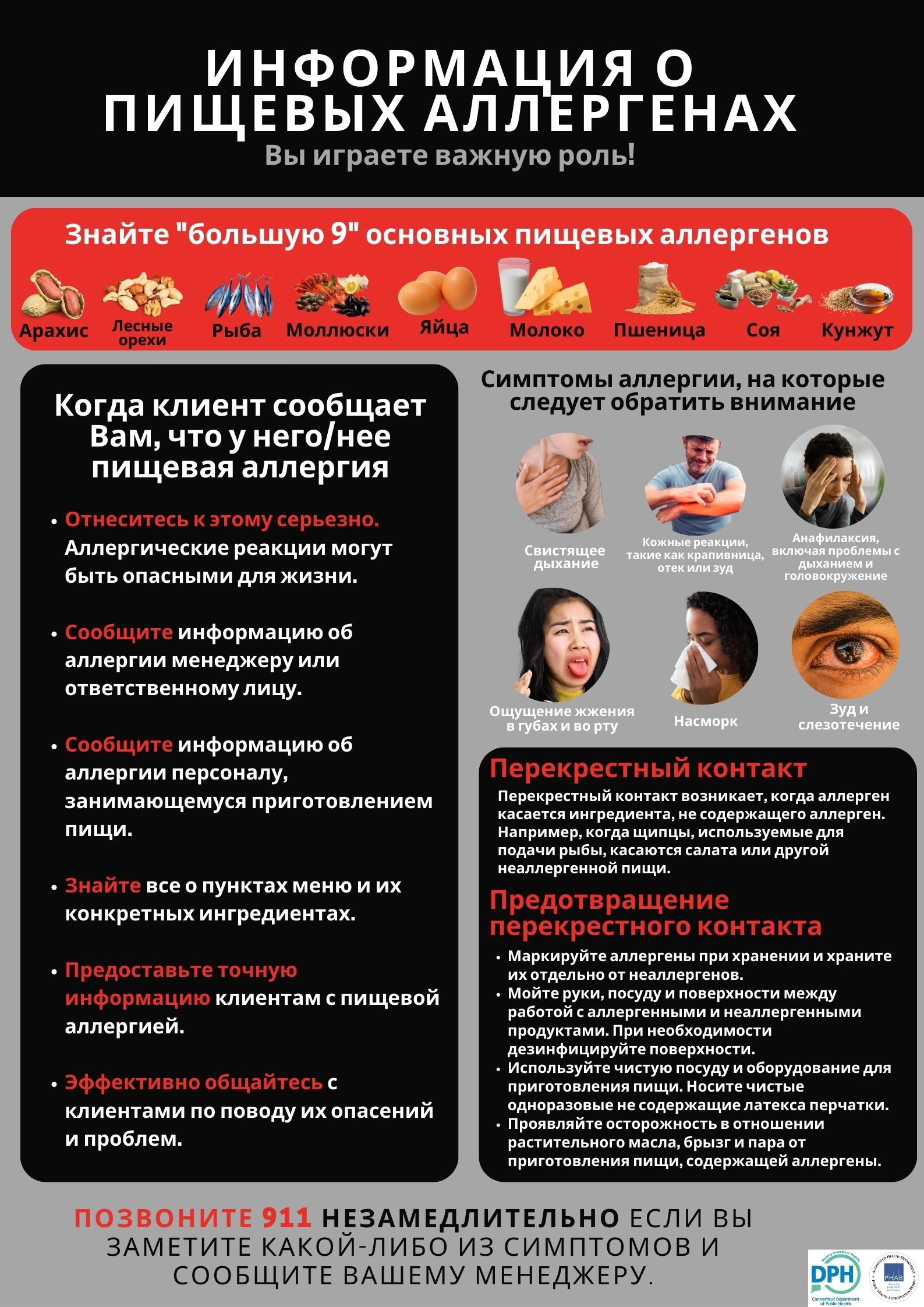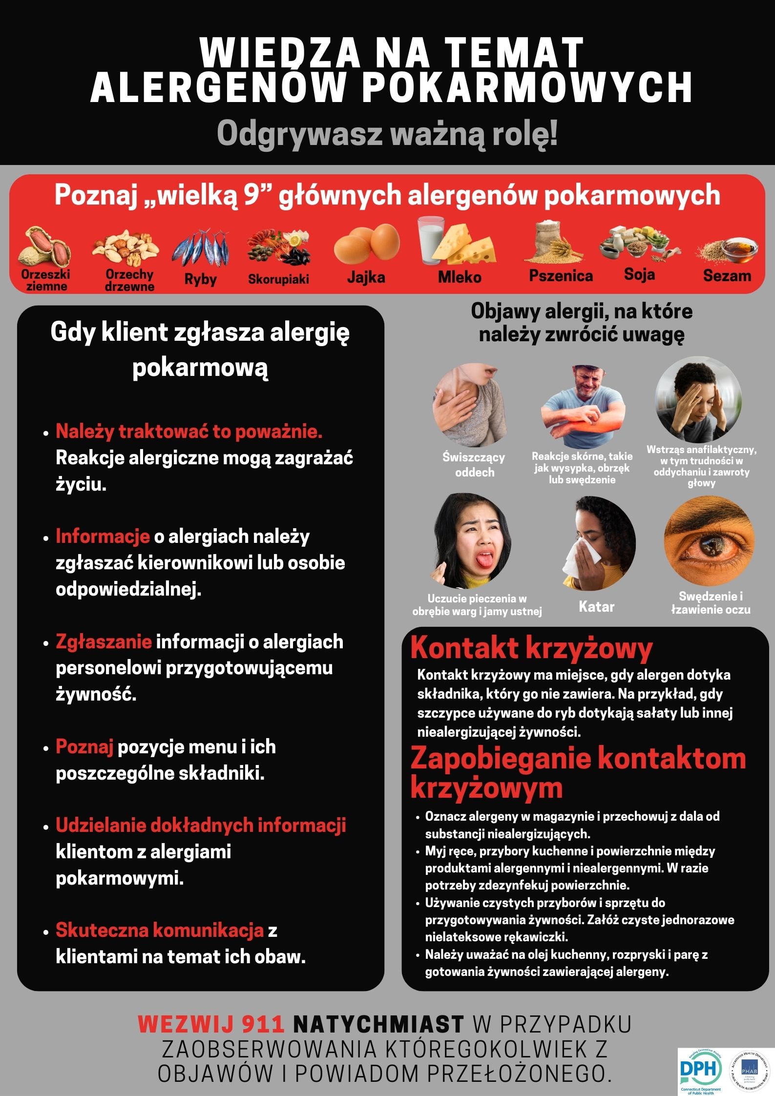 - The need to contact the 911 emergency telecommunications number if a customer has an allergic reaction while on the premises of such food establishment