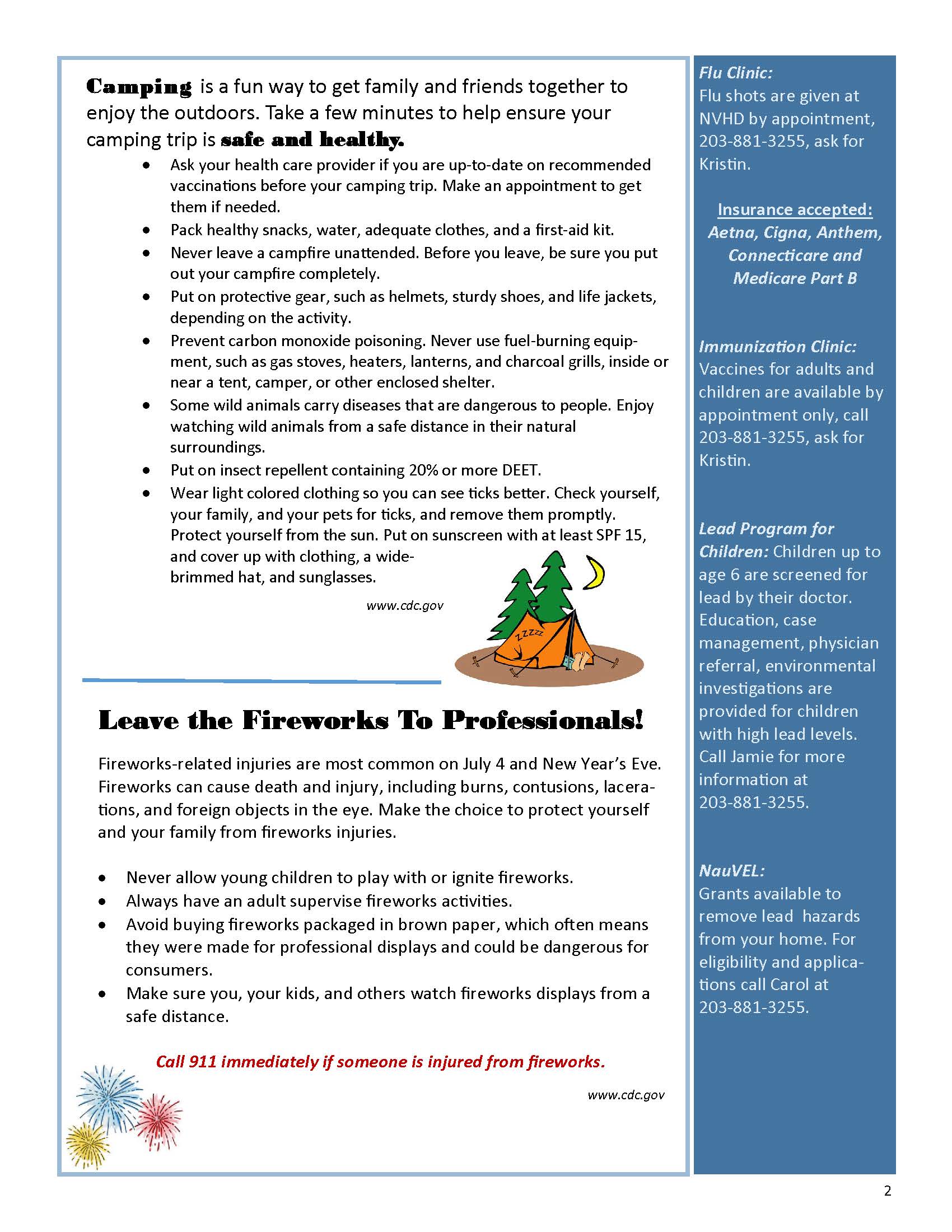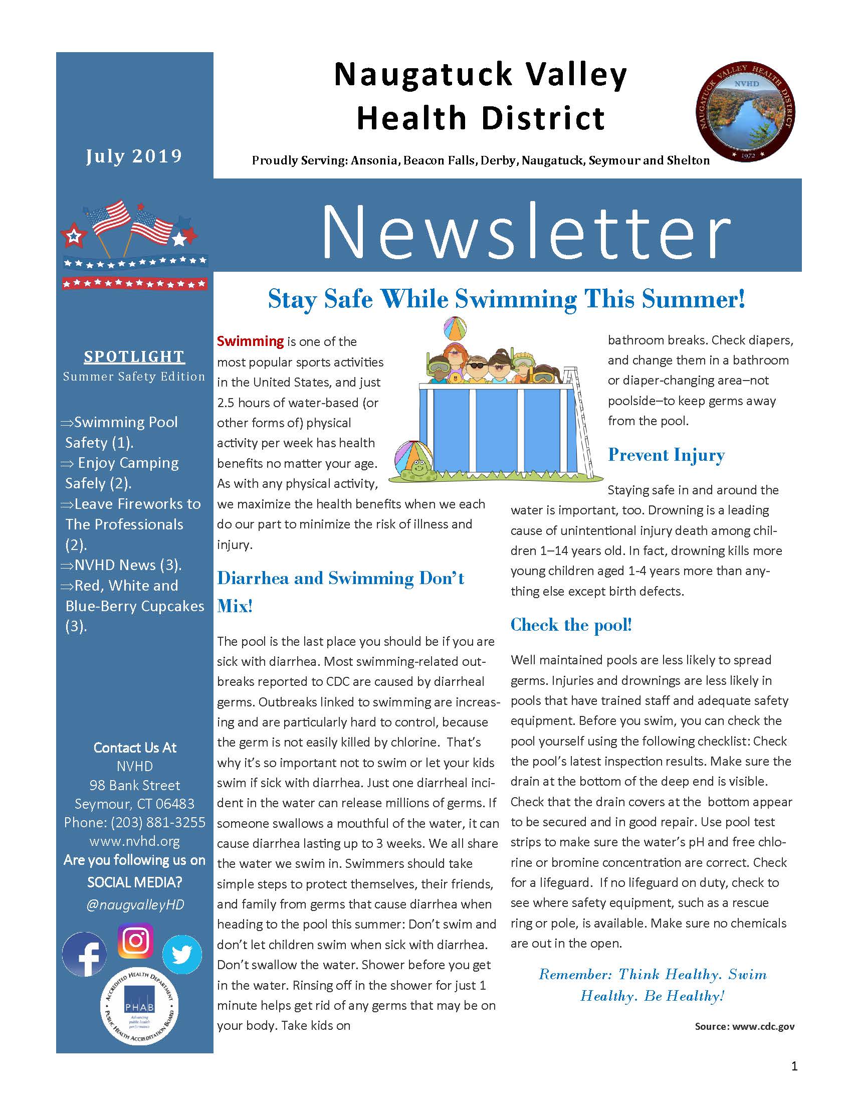 Issue Topics: Safety Topics: Swimming Pools, Camping, and Fireworks; NVHD Updates; Monthly Recipe….