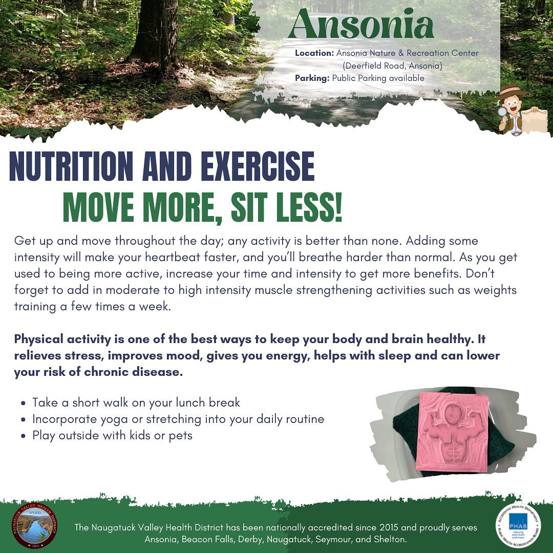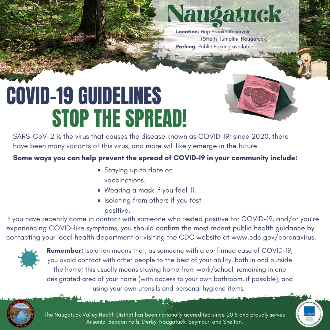 We encourage participants to share a photo of their adventure with us. Photos may be posted on the Naugatuck Valley Health District’s website and social media pages including FacebookTwitter and Instagram.