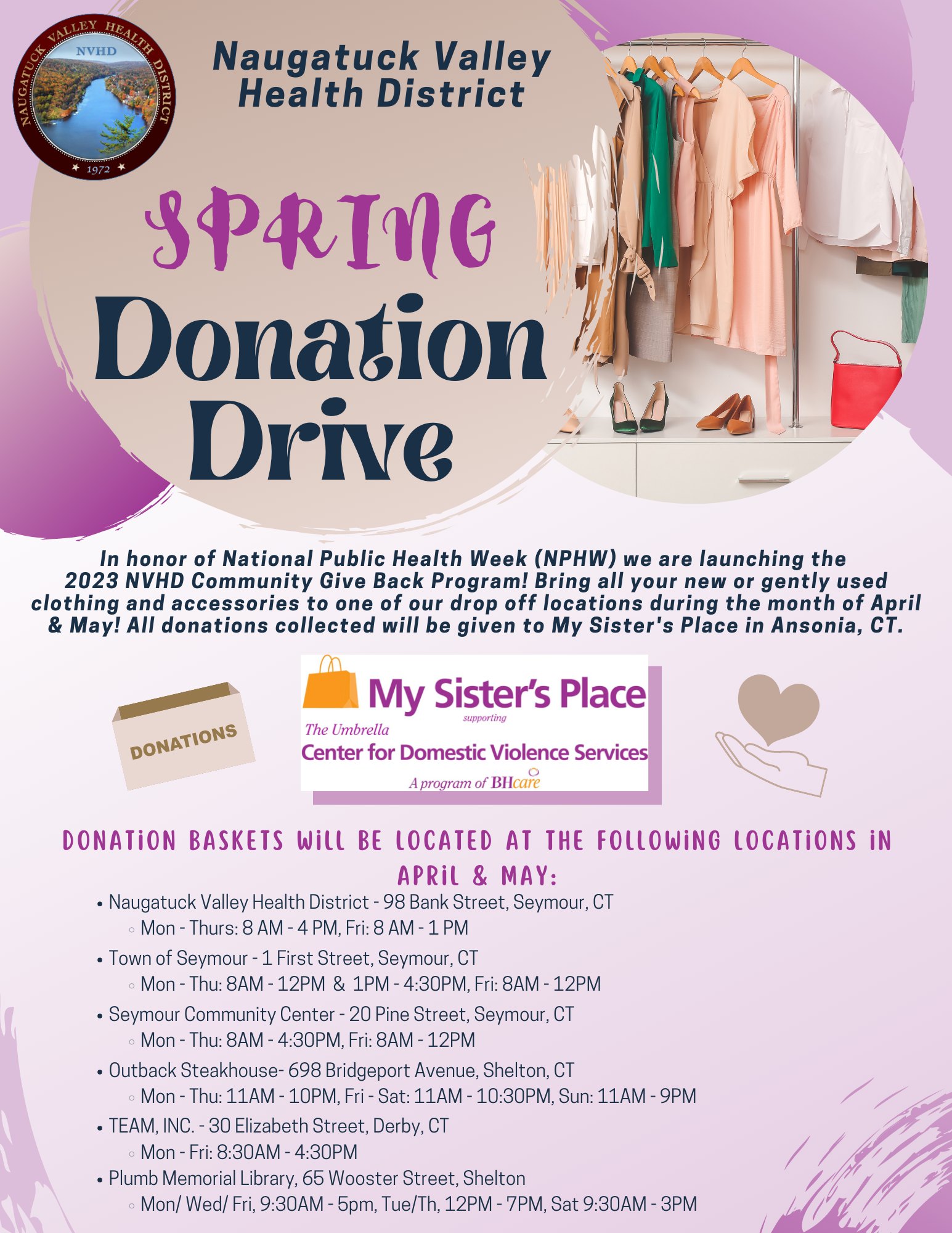 Naugatuck Valley Health District is committed to protecting the environmental and physical well-bring for its communities through the promotion of health access, health education, regulation, community engagement, and partnerships. In honor of National Public Health Week (April 3- 9), NVHD wanted to encourage residents to make an impact when it comes to public health and resilience within our community, and they can now do this by supporting our new “Community Give Back Program”.