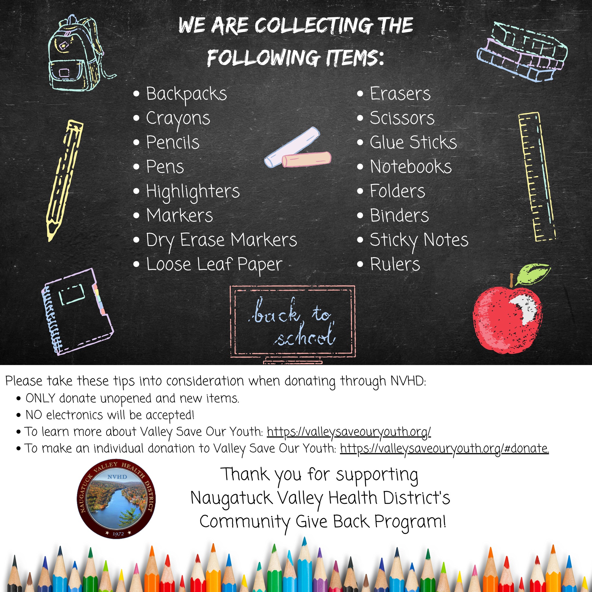 Naugatuck Valley Health District‘s Community Give Back Program spotlights Valley Save Our Youth for the month of August!