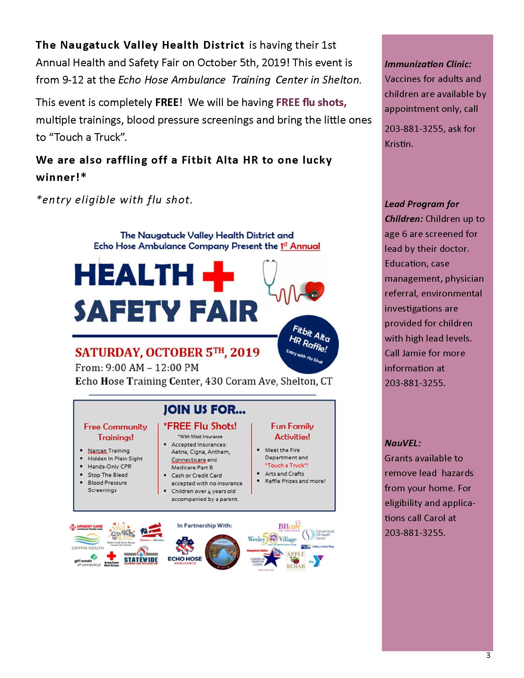 Issue Topics: Breast Cancer Awareness Month; Fight the Flu; NVHD Flu Clinic Schedule; Apple Crisp Recipe
