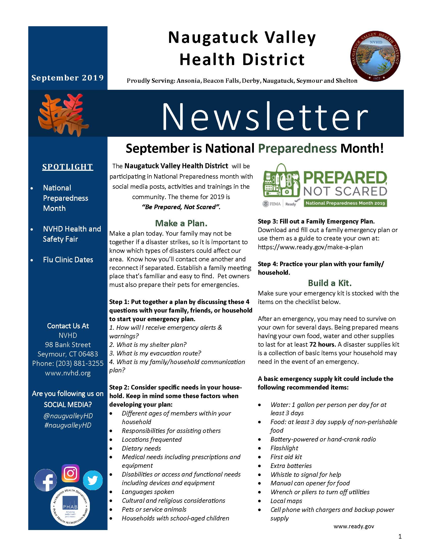 Issue Topics: Safety Topics: National Preparedness Month; NVHD Health and Safety Fair; Flu Clinic Dates…